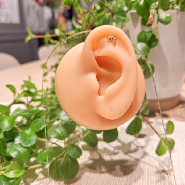 Goudkleurige piercing met zirkonen. Deze wordt per stuk verkocht.