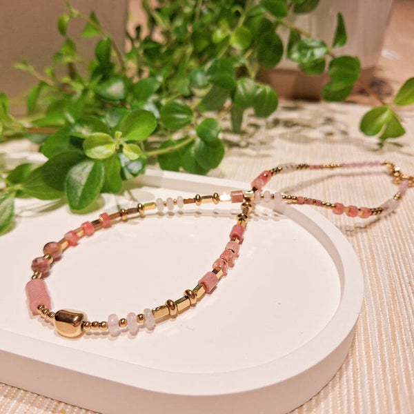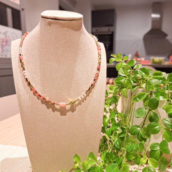 Natuursteen kralen ketting in verschillende kleuren.