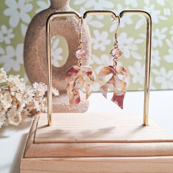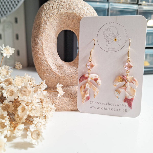 Handgemaakte oorbellen uit polymeerklei en 18k goud plated chirurgisch staal.