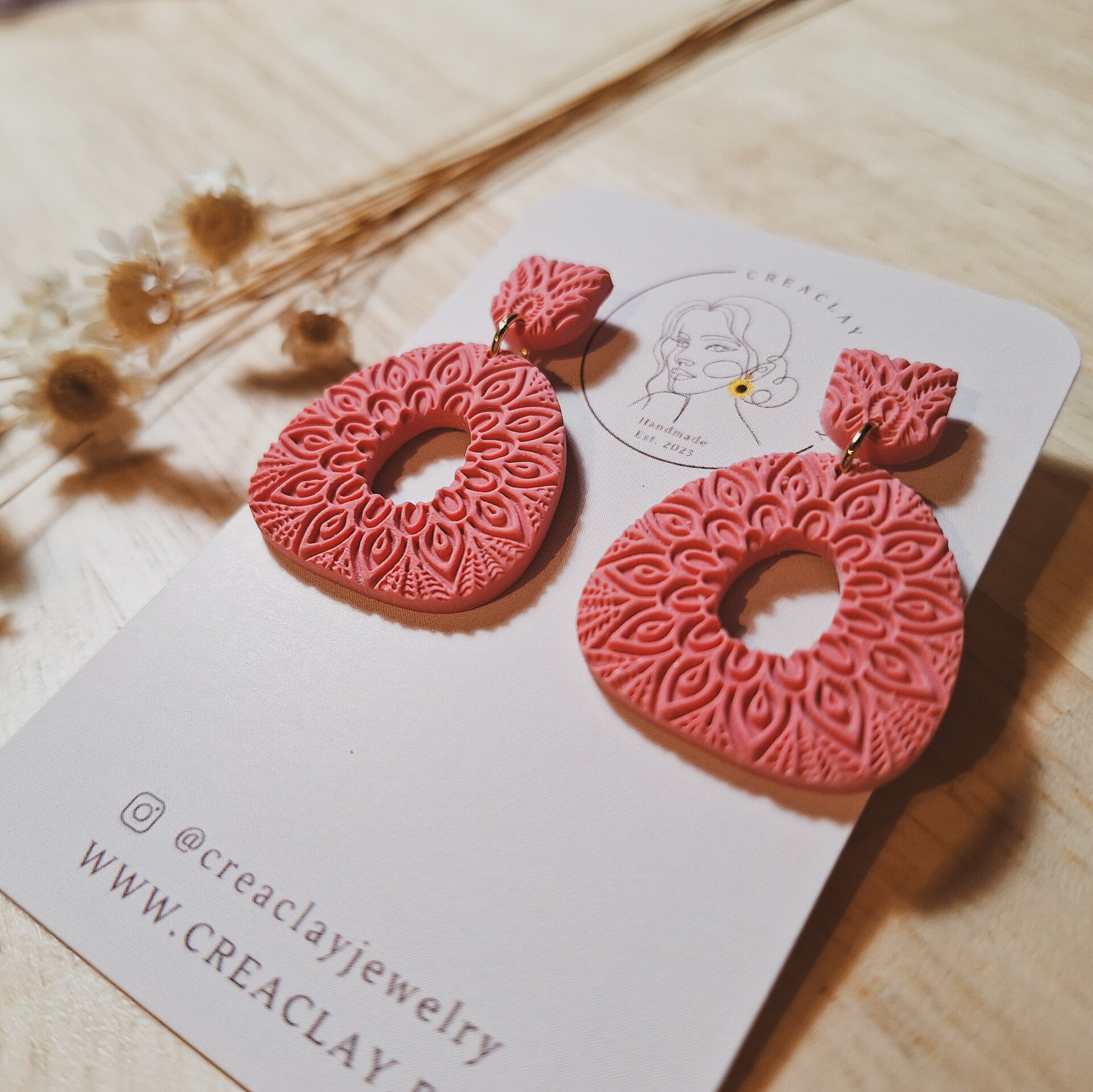 Handgemaakte oorbellen uit polymeerklei en roestvrijstaal.